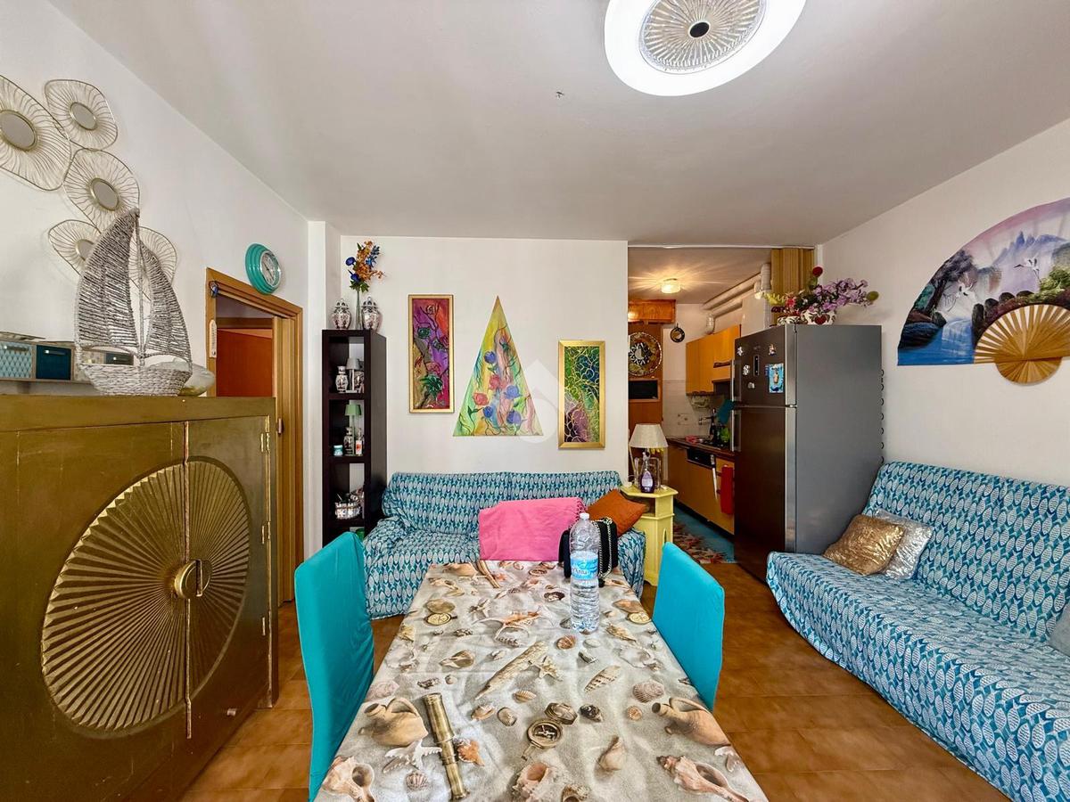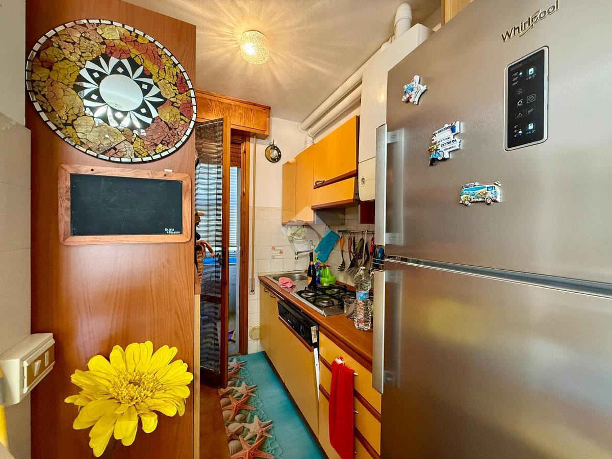 L'immobile si trova al secondo piano ed è composto da soggiorno con angolo cottura, due camere da letto, due bagni e balcone.