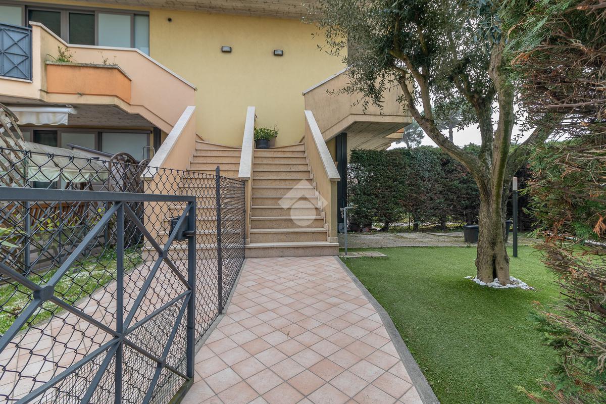 La proprietà include un giardino privato, ideale per momenti di relax all'aperto. All'interno, l'appartamento presenta un accogliente e luminoso soggiorno con angolo cottura.