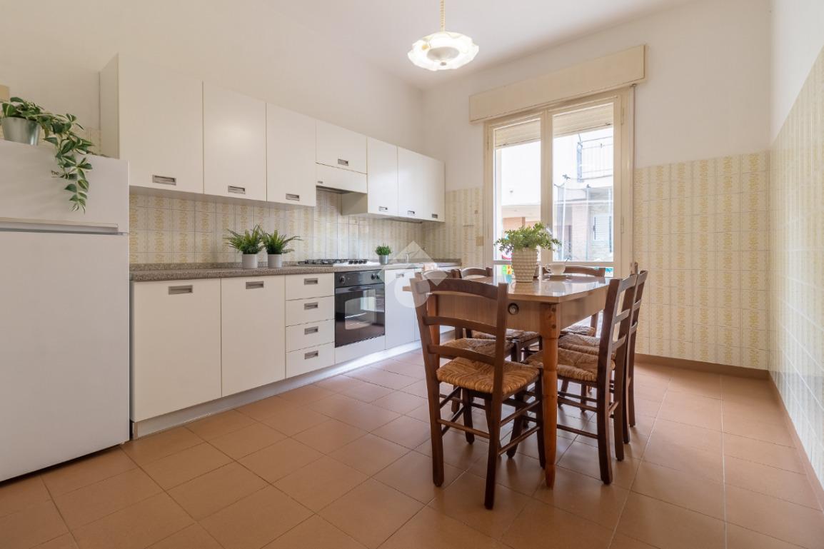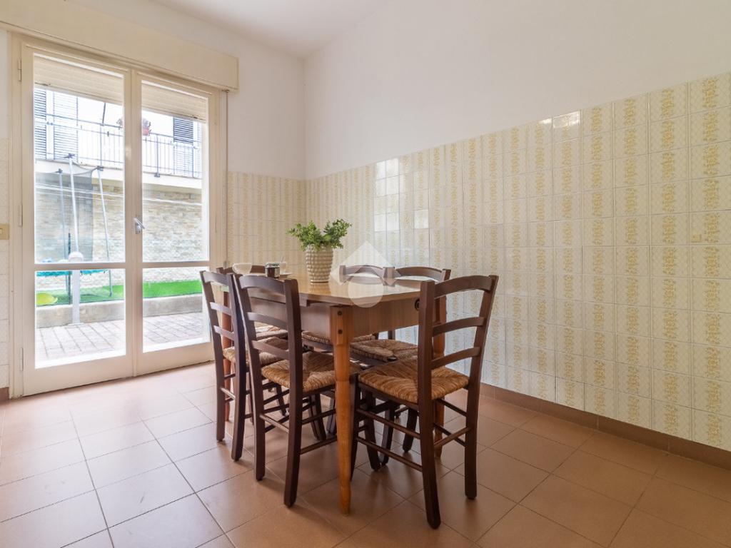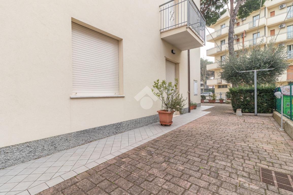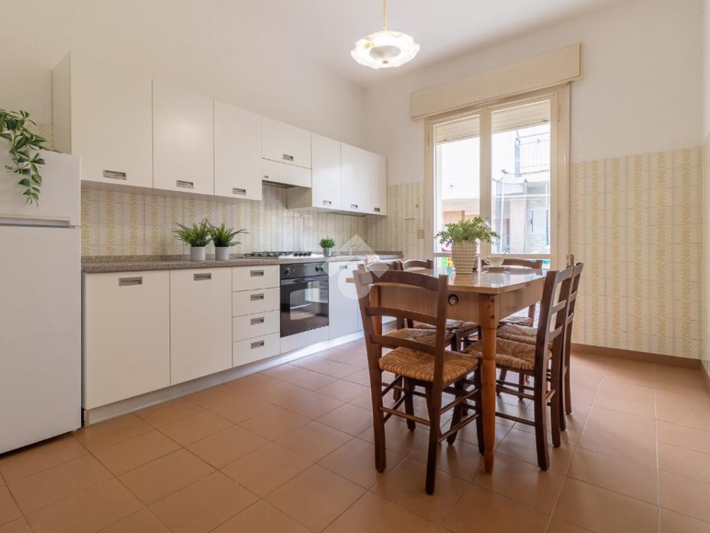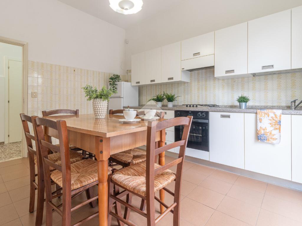 A pochi passi dal mare ed in palazzina di sole sei unità, appartamento trilocale al piano terra.
