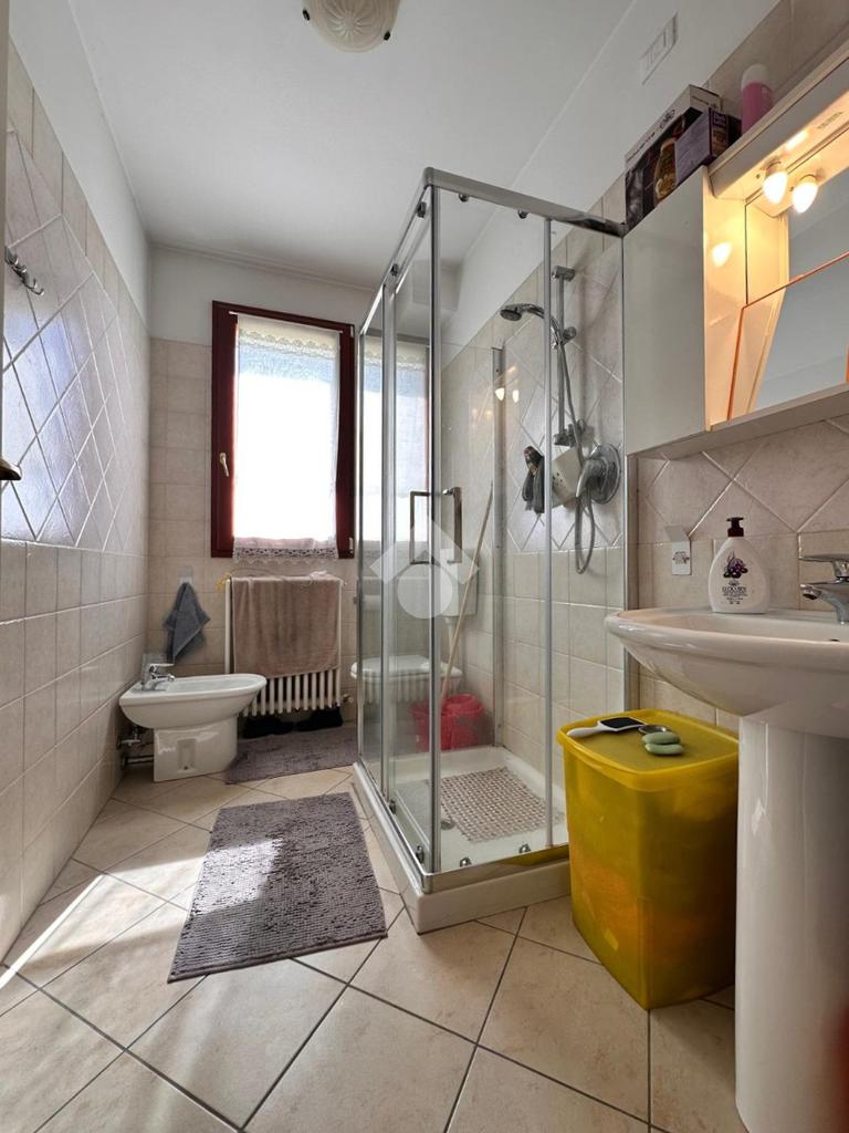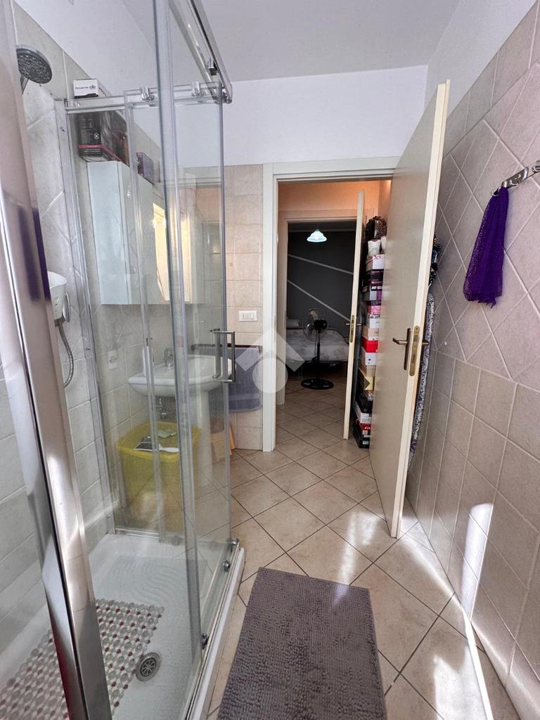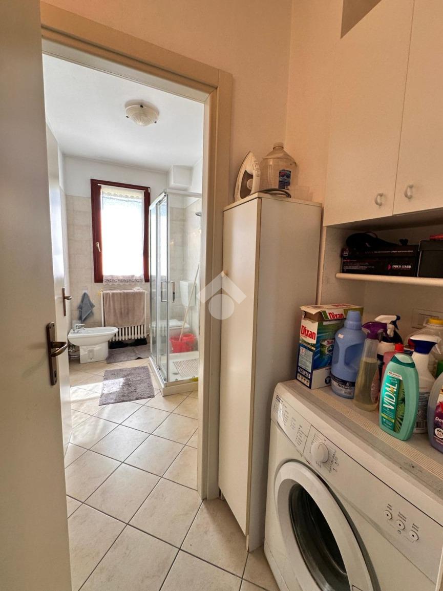 Inoltre il bagno finestrato completo di box doccia è preceduto da un antibagno nel quale è presente la zona lavanderia.